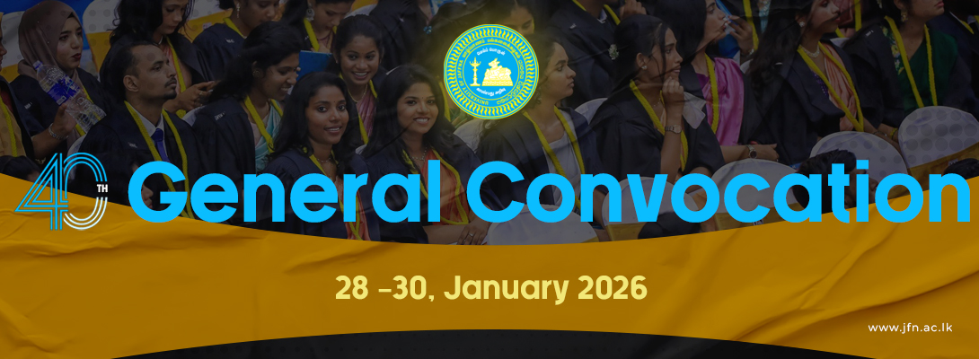 To produce intellectually and professionally competent graduates and postgraduates in alignment with current and emerging needs of the national and international community, engage in research, innovation and research commercialization, promote scholarship and engage with industry and community with a special emphasis on the social, economic and cultural needs of Northern Sri Lanka